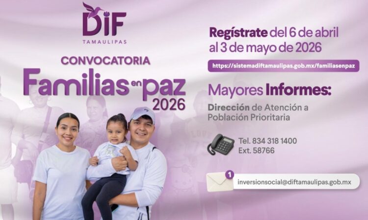 DIF Tamaulipas mantiene abierta la convocatoria “Familias en Paz 2026”