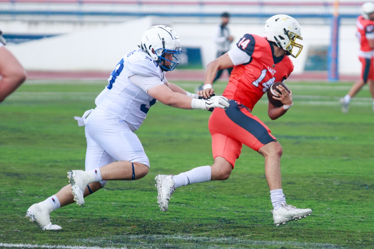 La defensiva de los Potros también hizo lo suyo: el linebacker Kevin Alberto Sánchez (50) interceptó un pase del segundo mariscal de campo de Correcaminos, Fernando García Vela (10), y dejó el terreno listo para otro golpe ofensivo.